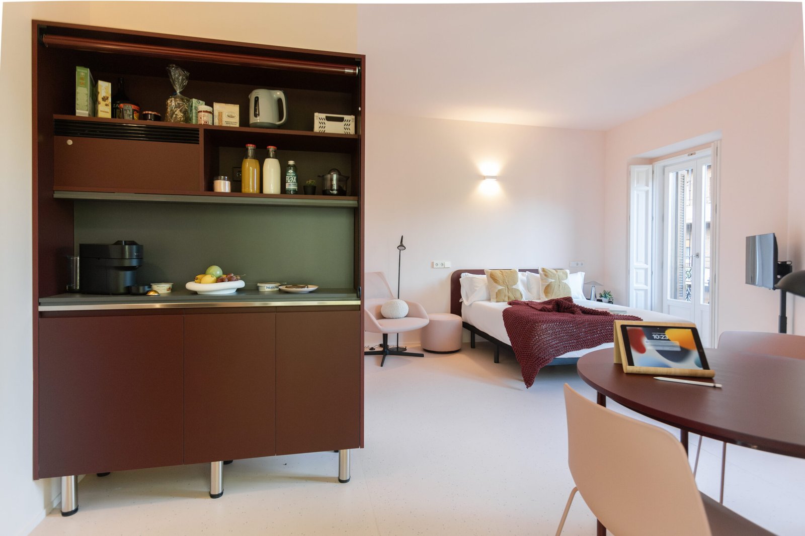 Suite completamente equipada, cada una con baño privado en-suite, escritorio, smart TV y kitchenette.
