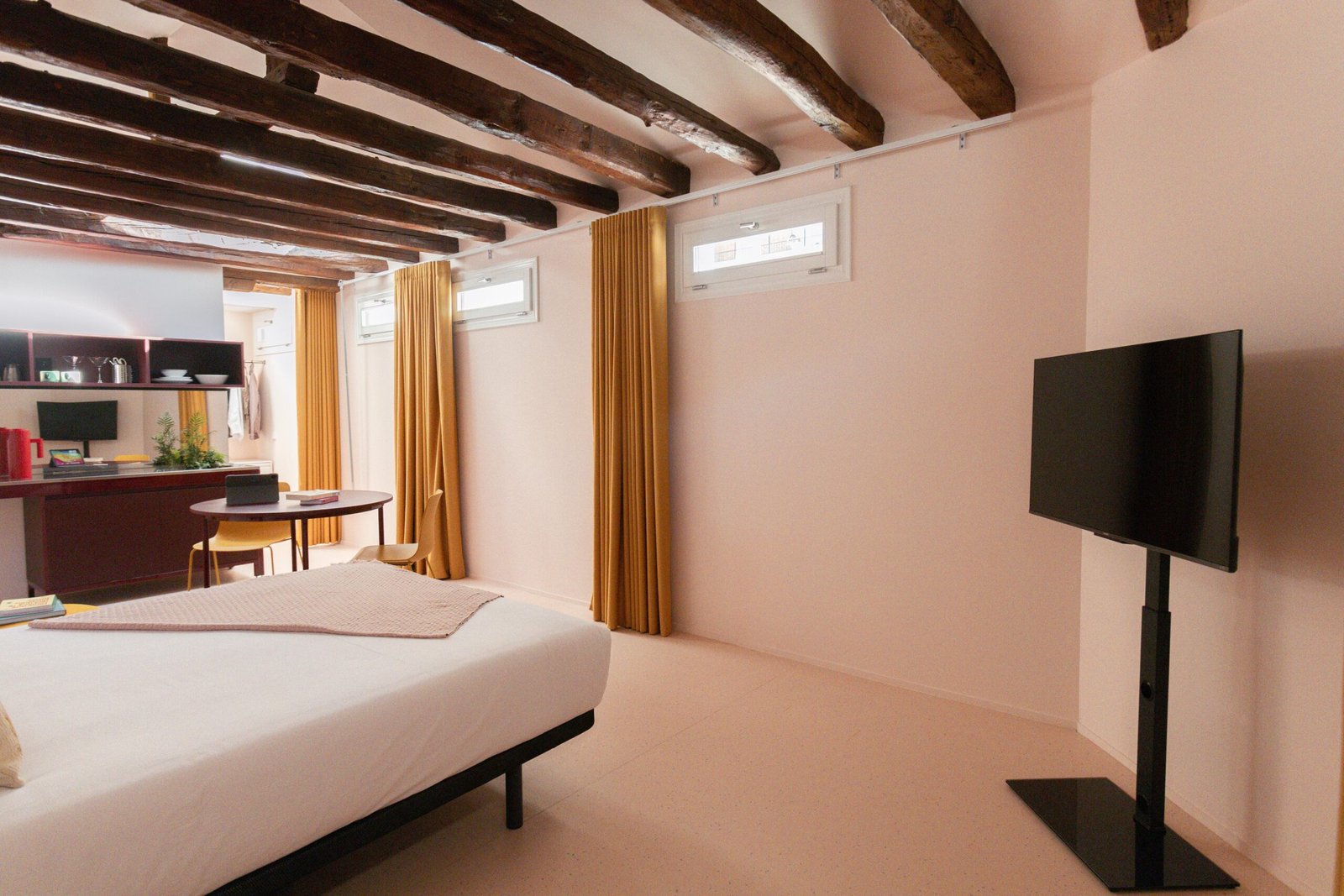 Fully equipped suite, each with a private en-suite bathroom, desk, smart TV, and kitchenette.
