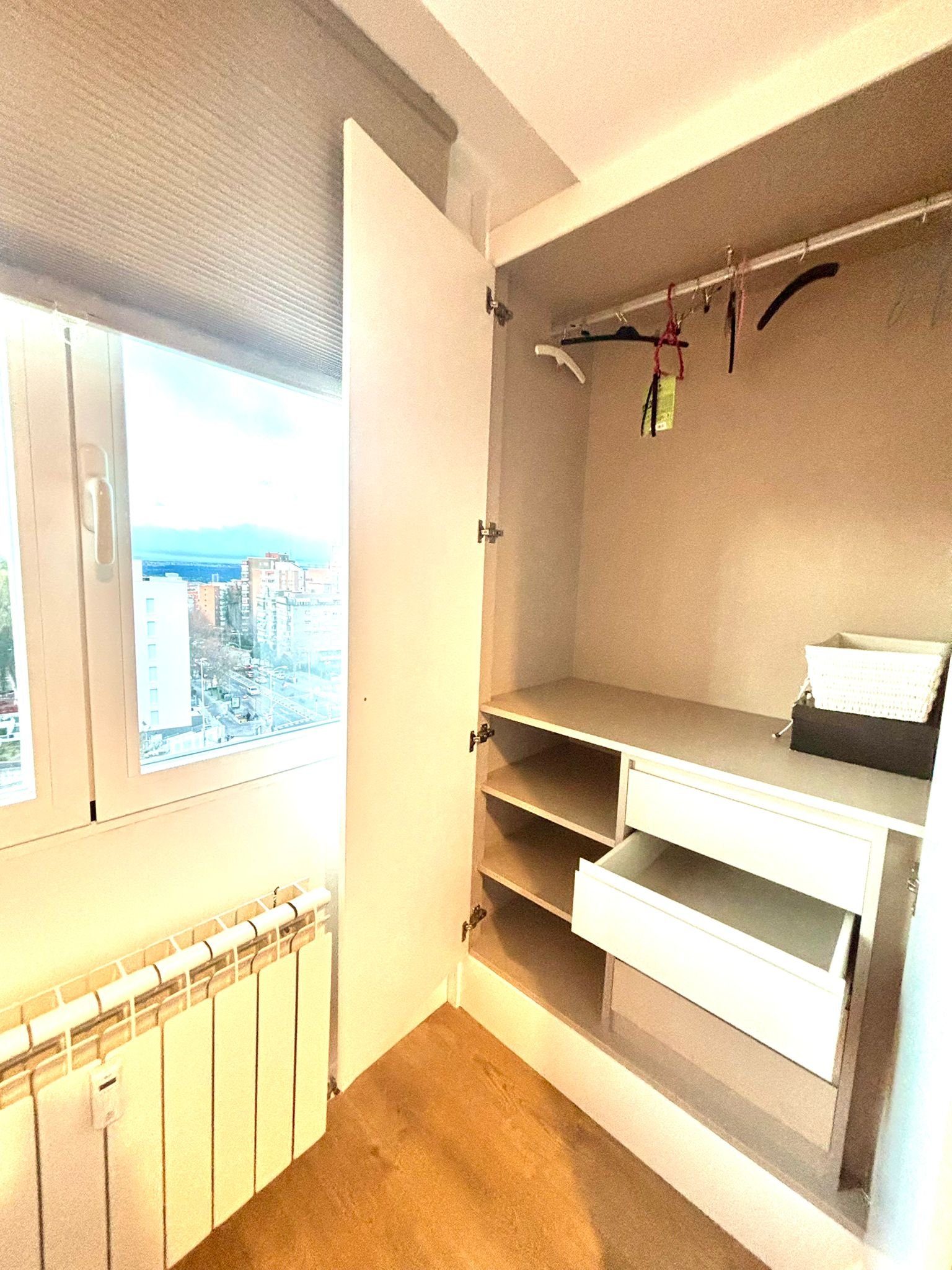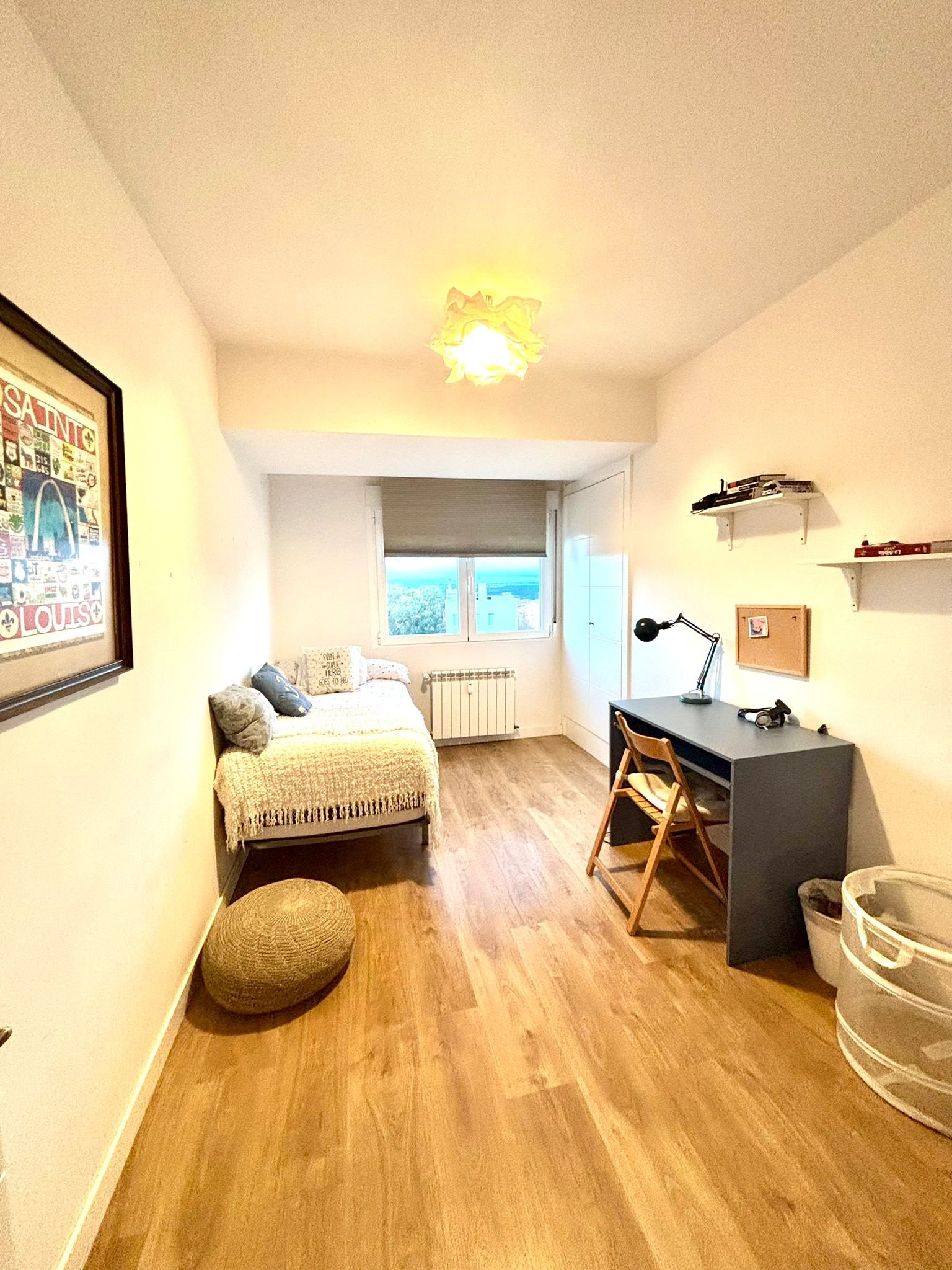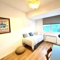The house has five bedrooms with three bathrooms, and two rooms with a private bathroom are rented to two students, one per room, preferably girls. The room is fully furnished and bright. It faces the street with stunning views of Madrid and features double-glazed noise-proof windows.