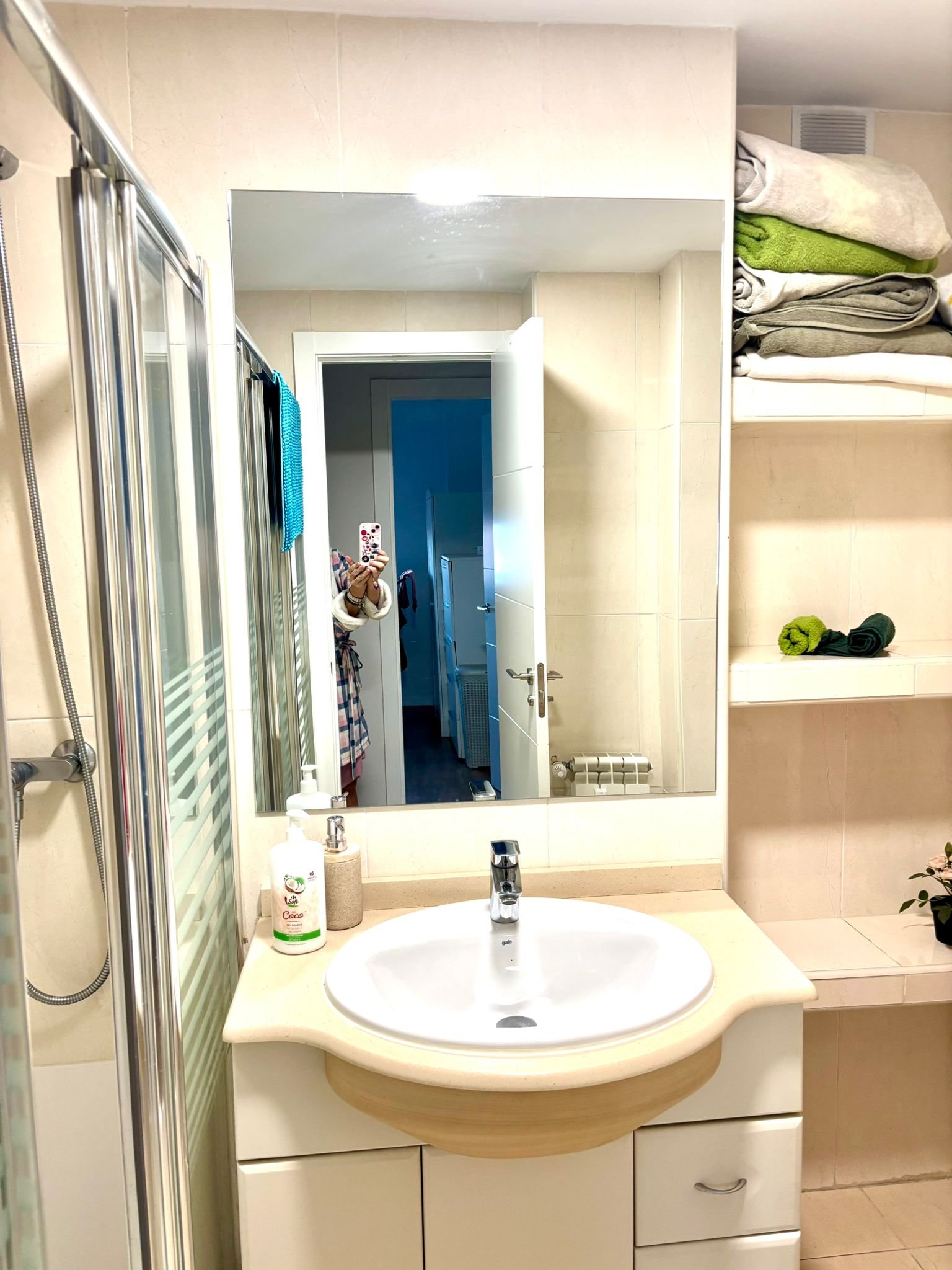 Cozy room with private bathroom in a family apartment for a woman and two 15-year-old children.